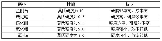 藍(lán)寶石利用CMP這種拋光方式加工,通常會在磨削液中加入碳化硼、碳化硅、金剛石、氧化鋁和二氧化硅等粉體(如表1)